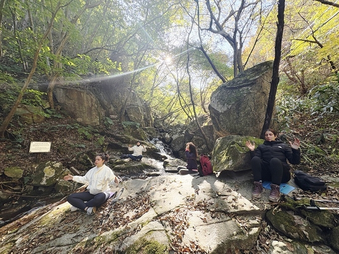명상단은 산행 중 비룡폭포와 우아일체의 계곡 등 ‘선도의 계곡’에서 호흡 수련을 진행하며 깊은 명상을 체험했다. 가을의 청명한 공기 속에서 시원한 계곡 물소리와 새 소리에 집중하며 자연의 순수한 기운과 하나 되는 에너지 명상으로 심신을 정화하고 새로운 에너지를 충전하는 시간을 가졌다.