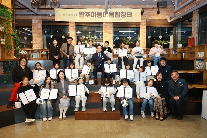 [완주신문]유니세프 아동친화도시인 완주군에서 장애·비장애 아동 27명이 함께한 ‘아동이음합창단’이 1년간의 활동을 마무리하고 최근 수료식을 개최했다.