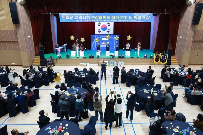 [완주신문]완주군 지역사회보장협의체가 27일 완주군문화체육센터에서 ‘2025 완주군 지역사회보장협의체 성과보고 및 모범위원 표창·화합의 장’을 열었다.