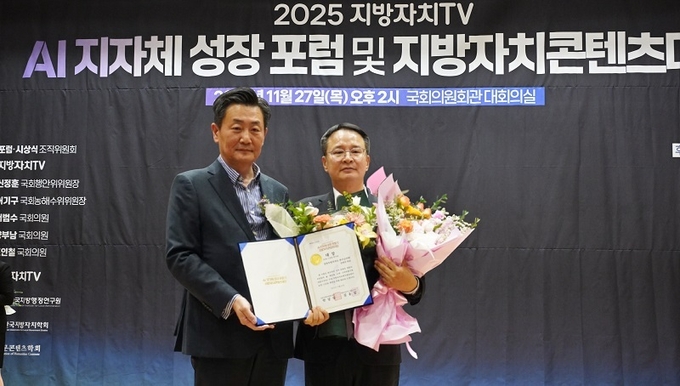 ‘AI 지자체 성장 포럼 및 지방자치콘텐츠대상’은 지역이 주도하는 미래혁신 정책을 발굴·확산하기 위해 마련된 행사로, 스마트 농수축산 정책, 디지털 전환 추진 성과, 농촌 공동체 활성화 사례 등을 종합 평가해 수상자를 선정한다.