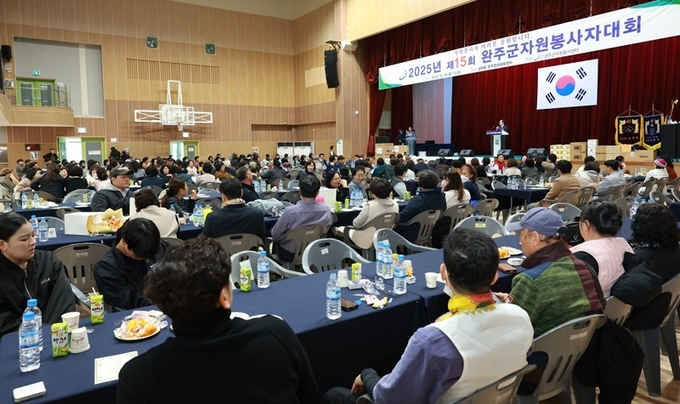[완주신문]완주군자원봉사센터는 완주문화체육센터에서 ‘2025년 제15회 완주군 자원봉사자대회’를 열고, 한 해 동안 지역사회 곳곳에서 활동한 자원봉사자들의 노고를 격려했다.