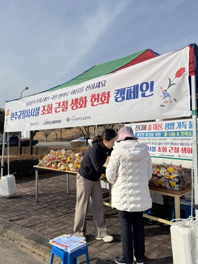 이번 활동은 지난 13일 완주군 및 (사)한국화훼자조금협의회와 체결한 ‘플라스틱 조화 사용 근절 및 생화 헌화 문화 정착을 위한 업무협약(MOU)’에 따른 첫 번째 실천 과제로 마련했다.