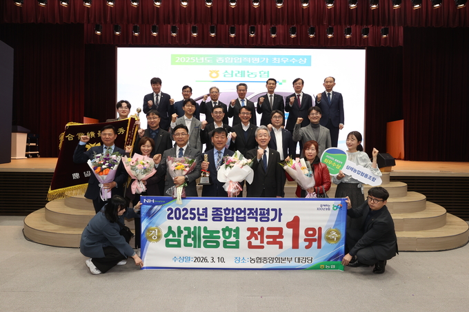 삼례농협은 지난 10일 농협중앙회 본관에서 열린 ‘2025년도 종합업적평가 최우수 농축협 시상식’에서 최우수상을 받았다. 특히 2023년 종합업적평가 1위에 이어 다시 한번 전국 최고 성과를 거두며 지역 농협의 경쟁력을 입증했다.