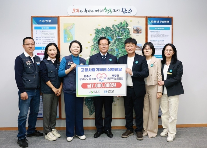 이에 완주군 관계자는 “매년 자발적으로 상호기부에 앞장서 주시는 공무직 노동조합에 감사를 드린다”며, “전달된 기부금은 취약계층 지원 및 지역 공동체 활성화 등 주민 복리 증진 사업에 소중히 사용하겠다”고 말했다.