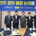 [완주신문]행정안전부가 완주·전주 통합을 조속히 매듭지을 전망이다. 25일 행정안전부 윤호중 장관은 김관영 전북도지사, 더불어민주당 이성윤(전주을)·안호영(완주·진안·무주) 국회의원, 우범기 전주시장, 유희태 완주군수와 6자 간담회를 열었다. 아울러 조만간 주민투표를 실시하는 방안을 포함해 지자체들의 의견을 존중해 결정키로 했다. 윤호중 행안부 장관은 이날 국회 본관 식당에서 연 간담회 이후 "통합건의가 지난해 4월에 이뤄졌고 그동안 내란, 대선 등으로 논의가 매듭지어지지 않고 지연이 됐는데, 시민·군민들이 느끼는 피곤함을 덜어드려야 할 때가 됐다"고 밝혔다. 이어 "통합방식에 대해서는 다소 의견 차이가 있었지만 차이는 행안부 장관인 저에게 맡기고 조속히 결정을 내려달라는 입장이었다"고 설명했다. 김관영 지사와 이성윤 의원, 우범기 시장은 주민투표를 통해 주민의 의사를 직접 확인하고 그 결과에 모두가 승복해야 한다는 입장을 밝혔다. 김관영 지사는 "절차적 정당성과 신뢰를 회복하는 길은 주민투표"라며, "투표 과정에서의 갈등을 최소화하기 위한 신사협정이 필요하다"고 주장했다. 반면, 유희태 군수는 "이제 결론을 내야 하는데 저희는 모든 결정을 행안부 장관께 내