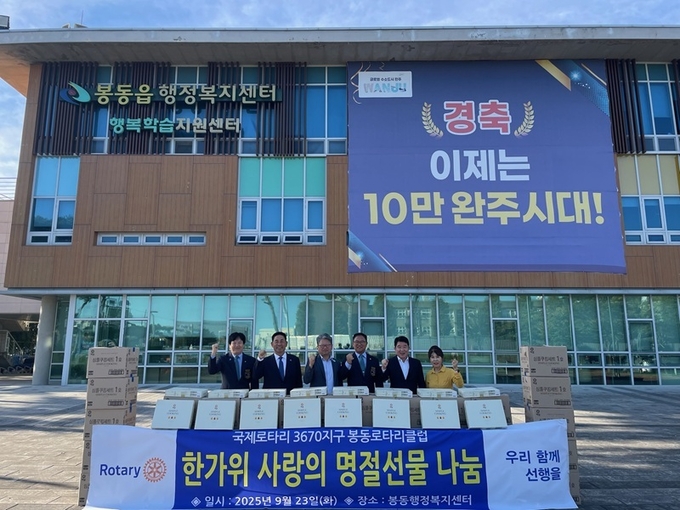 이날 행사는 장정구 회장을 비롯한 봉동로타리클럽 회원들이 어려운 이웃들을 돕고자 뜻을 모아 생필품세트를 기부하며 마련됐다. 기탁된 생필품세트는 가정방문을 통해 추석명절을 맞아 소외감을 느끼기 쉬운 취약계층들에게 전달 될 예정이다.