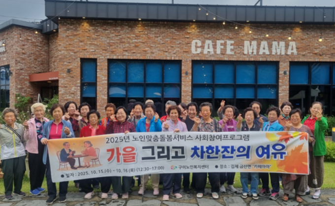 [완주신문]완주군 구이노인복지센터가 최근 노인맞춤돌봄서비스 대상자 중 사회적참여가 적은 어르신들 140명을 모시고 김제시 금산면에 있는 ‘카페마마’로 나들이를 다녀왔다.