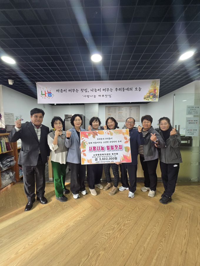 이윤순 주민자치위원장은 “주민자치프로그램 발표회를 통해 모금된 금액으로 소양면의 지역현안 해결을 위해 힘을 보탤 수 있어 기쁘고 앞으로도 소양면의 다양한 지역현안에 관심을 가지겠다”고 말했다.