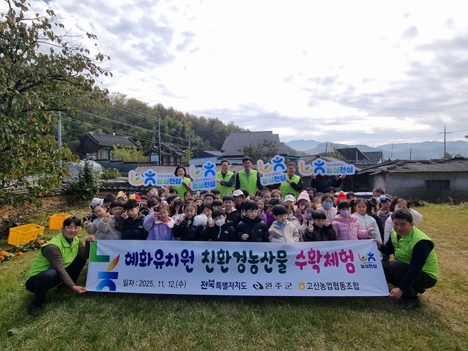 [완주신문]고산농협(조합장 손병철)은 지난 12일, 전주시 혜화유치원생 70여명을 초청해 친환경 농산물 수확 체험을 실시했다.