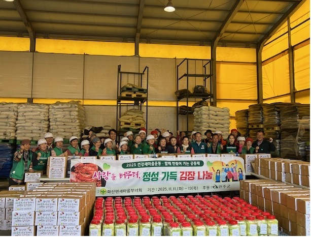 임미정 화산면장은 “따뜻한 마음으로 매년 김장김치 나눔을 실천하는 화산면 새마을부녀회에 감사드린다”며, “정성과 나눔 덕분에 우리 면이 더욱 따뜻해지고 있다”고 감사의 인사를 전했다.