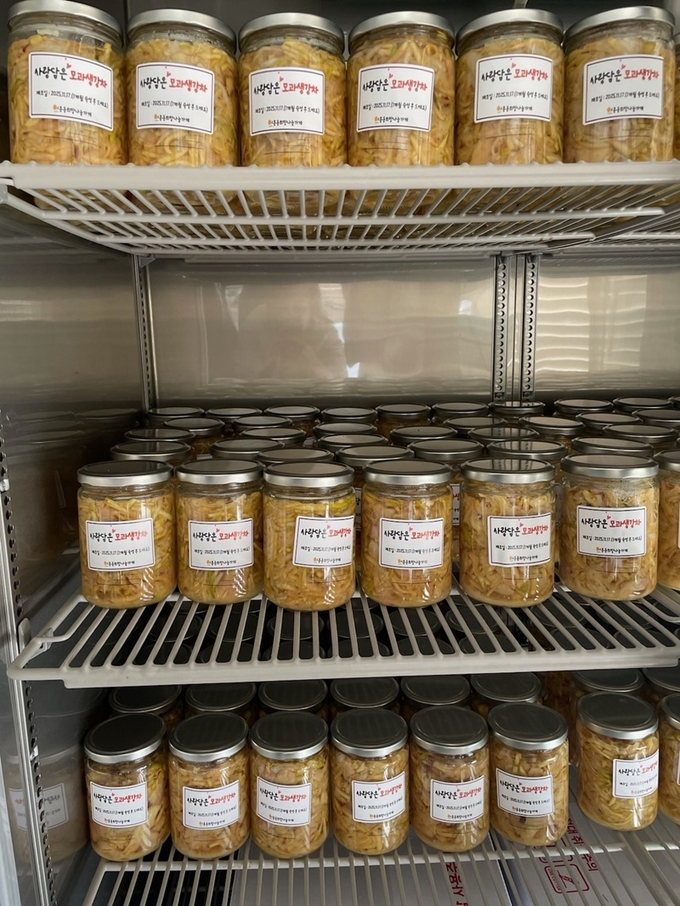 지역사회보장협의체 위원들은 모과 세척부터 손질, 생강 혼합, 병입, 라벨 부착까지 전 과정을 직접 참여해 200병의 모과생강청을 만들어, 희망나눔가게에 비치했다.