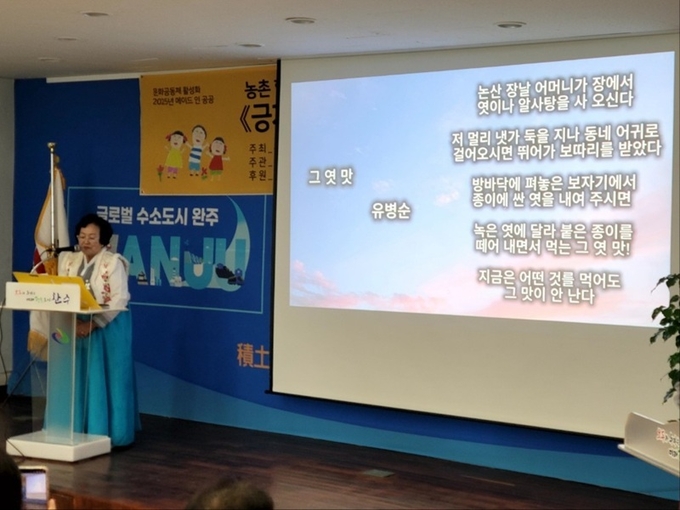 출간기념회에서는 유병순 어르신의 「그 엿맛」, 김순곤 어르신의 대표작 「긍게 내가 좋드만」 등 총 19편의 시 낭송이 진행됐다. 어르신들은 다소 떨리는 목소리로 자신들의 삶을 읽어 내려갔고, 가족과 부모님의 이야기들이 PPT와 함께 화면에 펼쳐지자 참석자들도 눈시울을 붉히며 깊은 감동을 함께 나눴다.