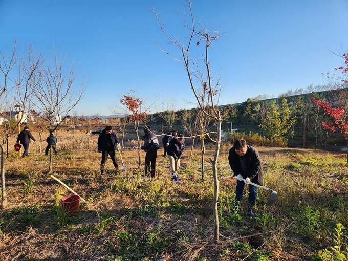 숲가꾸기 체험이 진행된 감돌숲공원은 스트로브잣나무·전나무·느티나무 등 21종 2422주의 교목류와 회양목·사철나무 등 16종 3만 4620주의 관목류가 조성된 근린공원이다.