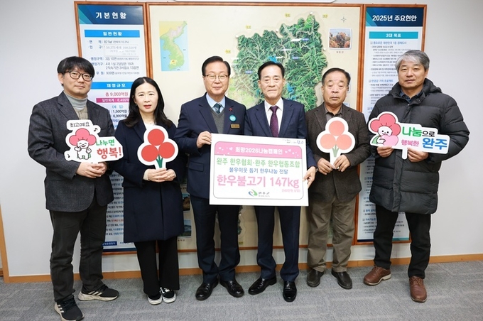 [완주신문]전국한우협회 완주군지부(지부장 정봉락)·완주한우협동조합(이사장 박일진)가 희망2026 나눔 캠페인을 맞아 지역 사회의 이웃들을 돕기 위해 500만 원 상당의 소불고기용 한우 147kg을 완주군에 기부했다.