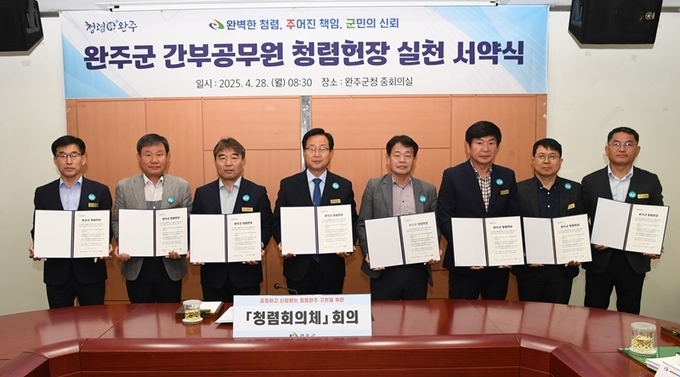 24일 완주군은 올해 종합청렴도 측정 결과 전국 군 단위 기초지자체 평균보다 5.7점 높은 점수를 받았으며, 청렴체감도‧노력도 부문 모두 군단위 지자체 대비 높은 점수를 받았다.