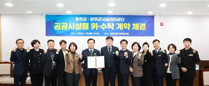 이날 체결식에는 유희태 완주군수와 소관 부서장, 이희수 완주군시설관리공단 이사장과 공단 팀장 등 10여 명이 참석했다. 행사에서는 공단의 2025년 운영 성과와 올해 운영 계획을 공유하고, 위·수탁 계약서를 교환했다.