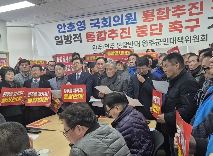 완주군민대책위원회는 이날 성명을 통해 △안호영 국회의원의 각성 △완주·전주 통합 여부에 대한 주민 선택과 민주적 절차 보장 △전북 정치권의 주민자치·자기결정권 보장을 중앙정부에 요구할 것을 촉구했다.