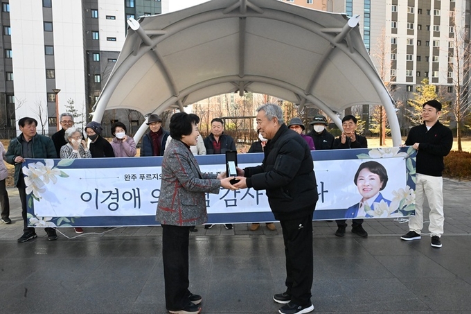 완주군의회 이경애 의원이 25일 주민들의 정주 여건 개선에 앞장선 공로를 인정받아 지역 삼봉 중흥 S-클래스 에듀파크 입주자대표회의로부터 감사패를 전달받았다.
