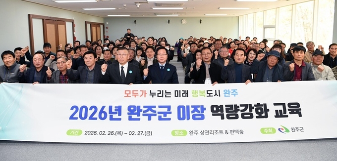 완주군이 지역사회를 이끌어갈 핵심 리더들의 역량을 강화하기 위해 ‘2026 완주군 이장 역량강화교육’을 열었다.