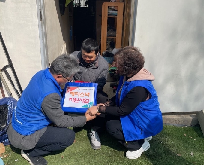 해피스낵 지원 사업은 경제적 어려움이나 돌봄 공백으로 균형 잡힌 식생활 유지에 어려움을 겪는 이웃을 직접 찾아가 간식 꾸러미를 전달하는 활동이다.
