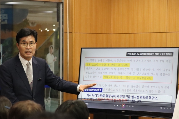 이 의원은 2024년 12월 4일 당시 전북도 도민안전실장의 기자브리핑 영상을 핵심 근거로 제시했다. 해당 브리핑에서 도민안전실장은 “행정부지사와 도지사 주재 긴급 실국장 회의를 진행했다”고 밝히며 비상계엄 대응 조치를 설명했다.