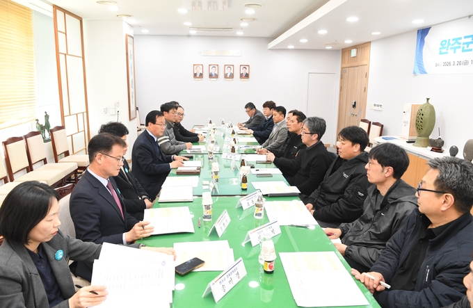 지난 20일 완주군은 유희태 완주군수와 관내 주요 수출기업 14개사 관계자들이 참석한 가운데 ‘중동 리스크 대응 및 수출기업 애로 청취 간담회’를 열었다.