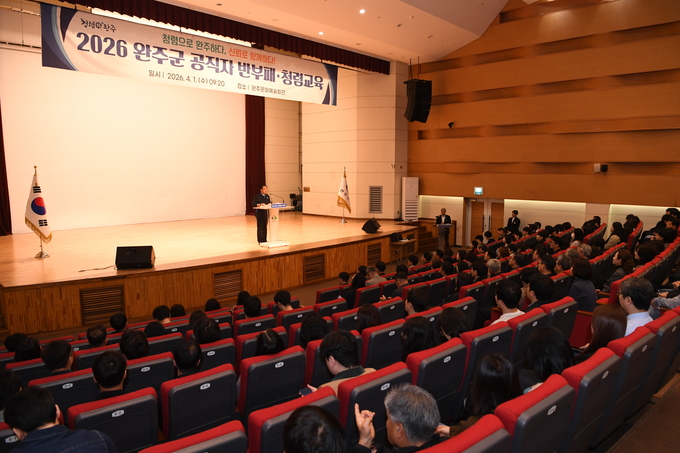 완주군이 공직자들의 청렴 의식을 높이고 공정한 조직 문화를 확산하고자 마련한 ‘2026년 상반기 반부패·청렴 교육 특강’을 지난 1일 완주문화예술회관에서 성황리에 마무리했다.