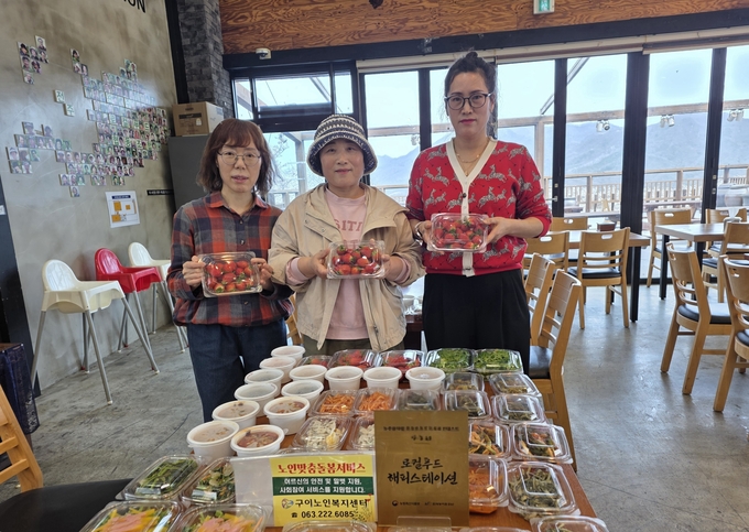 완주군 구이노인복지센터는 구이 모악산 정거장에 위치한 ‘완주로컬푸드협동조합 농가 레스토랑 행복정거장’에서 반찬을 후원받아 노인맞춤돌봄서비스 대상자 중 식생활 지원이 필요한 어르신들에게 전달했다.