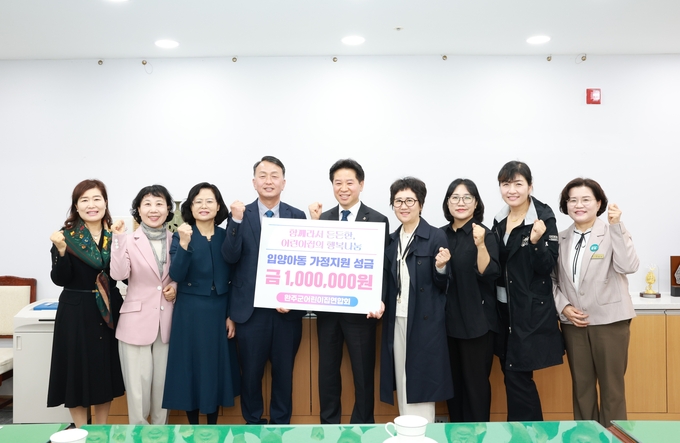 완주군 어린이집연합회(회장 이희봉)는 최근 입양 전 보호아동을 위해 성금 100만원을 완주군에 전달했다.